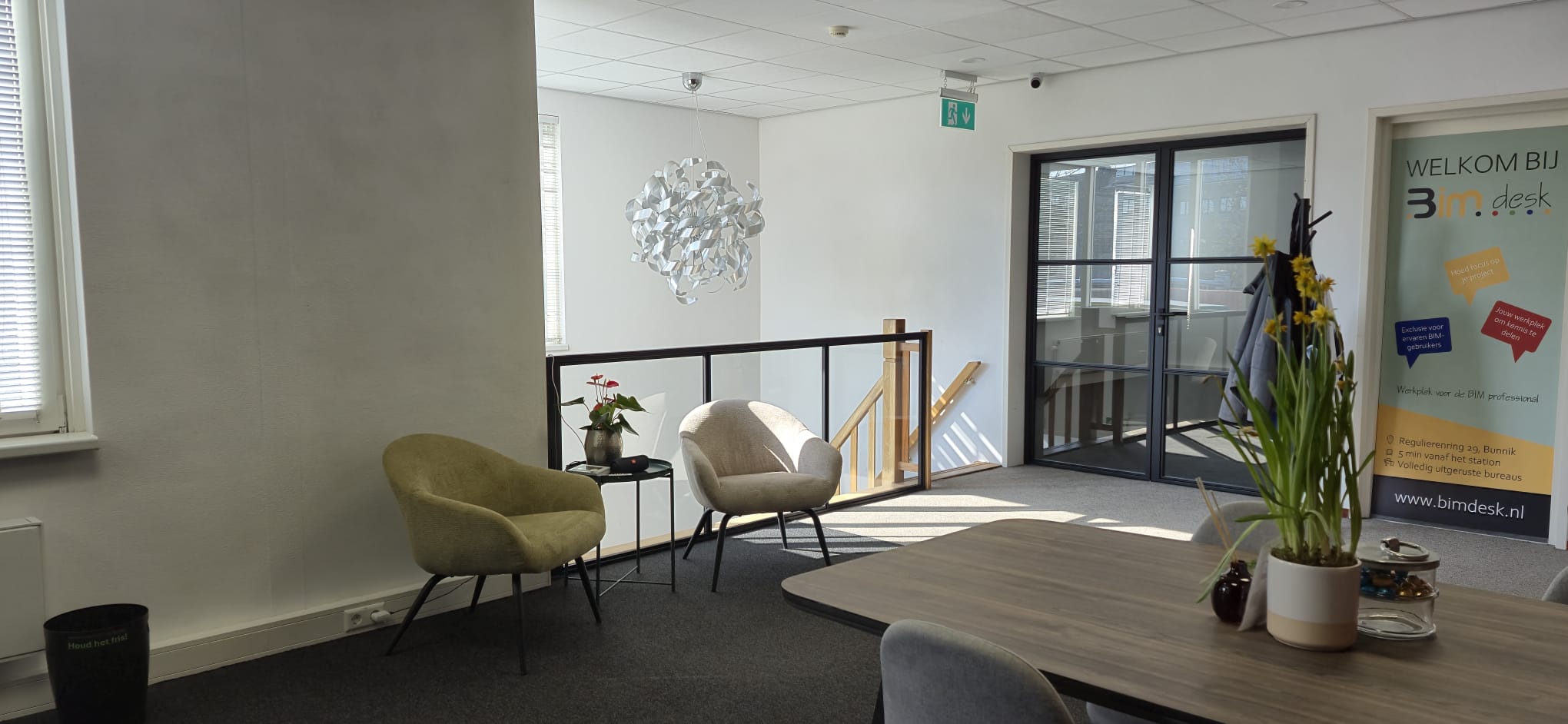 BIM Desk zit in Bunnik, op vijf minuten lopen van station en bus. De locatie ligt centraal en is goed bereikbaar. Het kantoor heeft ongeveer 200 vierkante meter ruimte. Erwin richt het pand stap voor stap in. Uiteindelijk wil hij twaalf werkplekken creëren, verdeeld over twee ruimtes. In elke ruimte komen maximaal zes mensen te zitten. Zo blijft het rustig en kan iedereen geconcentreerd werken. Naast de werkplekken zijn er ook focusruimtes. Daar kunnen professionals even apart zitten voor een telefoongesprek of overleg. Daarnaast zijn er plannen voor een vergaderruimte en ontspanningsruimte. “Rust op kantoor is belangrijk. Mensen moeten hier goed kunnen werken.”