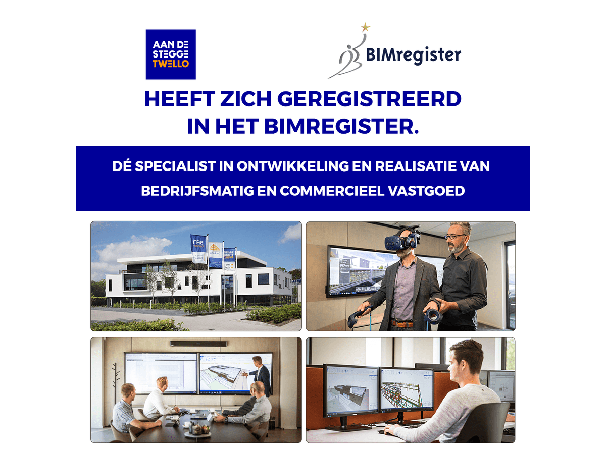 Aan de Stegge Twello is gespecialiseerd in de ontwikkeling en turnkey realisatie van bedrijfshuisvesting voor ondernemers. Hierbij beheersen wij het gehele proces van eerste planontwikkeling tot en met de uitvoering van de feitelijke bouw, veelal in bouwteam met de opdrachtgever, architect en installateur.