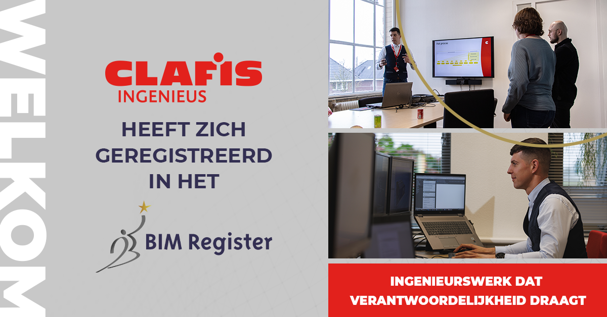 CLAFIS heeft zich aangesloten als partner van BIM Register. Het Nederlandse ingenieurs- en adviesbureau bestaat sinds 2004, telt inmiddels ruim 400 medewerkers en heeft zes kantoren verspreid door het land. Sinds september 2024 maakt CLAFIS deel uit van Team EIFFEL. Het bureau richt zich op uiteenlopende technische en maatschappelijke vraagstukken in sectoren zoals bouw, infra, energie, water, food, pharma en chemie. Met de komst naar BIM Register wil CLAFIS haar kennis en ervaring op het gebied van BIM verder delen en ontwikkelen.