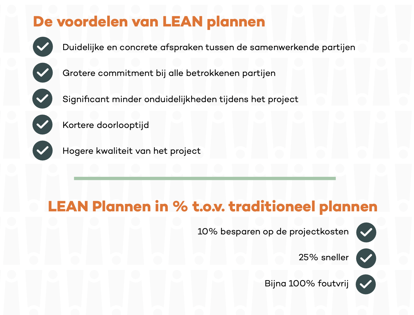 In een sector waar projecten steeds complexer worden en afhankelijkheden toenemen, is traditioneel plannen vaak niet meer toereikend. LEAN plannen draait om realisme, transparantie. Je plant op basis van wat haalbaar is, stemt continu af en houdt het plan actueel in plaats van achteraf bij te sturen op een document dat snel veroudert.